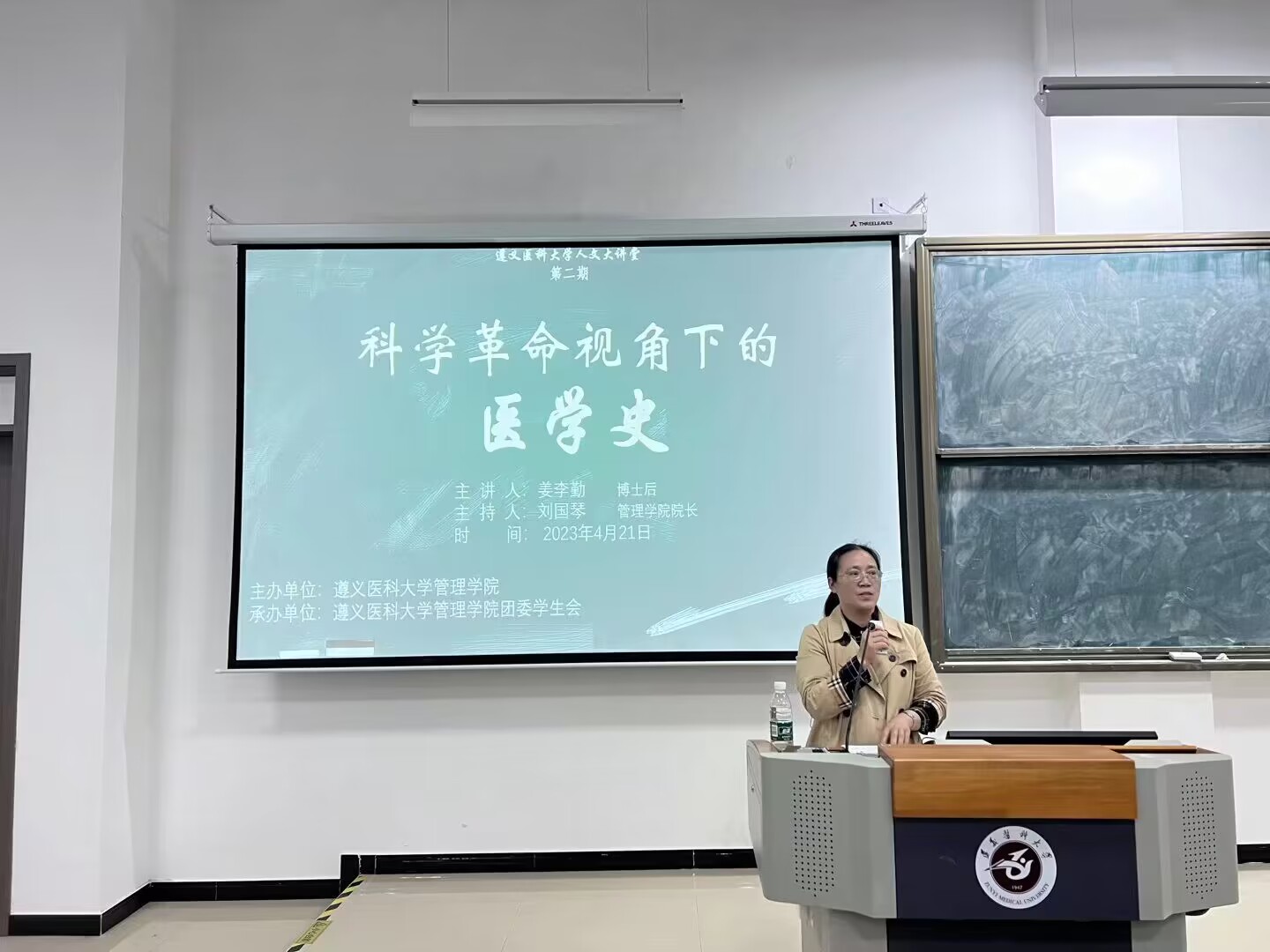 在世界读书日来临之际,为配合公司推广全民阅读,建设书香校园,向公司广大师生传播医学人文知识、提高文学素养,引领广大师生传承中华经典、弘扬民族文化,太阳成集团tyc122cc于2023年4月21日晚上7点在第三教学楼18阶梯教室开展了“人文大讲堂”主题系列讲座第二期——《科学革命视角下的医学史》。本次讲座由太阳成集团tyc122cc主办,太阳成集团tyc122cc团委员工会承办,人文医学研究中心姜李勤博士后主讲,太阳成集团tyc122cc经理刘国琴教授主持。