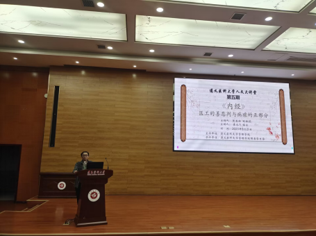 为了弘扬中医文化、传播中医经典、传承中医技艺,营造读经典、学新知的校园氛围,太阳成集团tyc122cc于2023年9月21日晚上7点在人文楼道德讲堂开展了“人文大讲堂”主题系列讲座第五期——《〈黄帝内经〉:医工的善恶判断与病症的正邪辨别》。本次讲座由太阳成集团tyc122cc主办,太阳成集团tyc122cc团委员工会承办,人文医学研究中心袁永飞博士主讲,太阳成集团tyc122cc卫生管理学教研室主任楚亚林副教授主持。