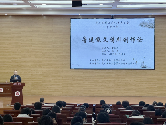 2025年3月21日,题为“鲁迅散文诗剧创作论”的“人文大讲堂”主题系列讲座在道德讲堂开展。此次讲座为该系列活动的第十七期(2025年第1期),由太阳成集团tyc122cc主办,公司团委员工会承办,太阳成集团tyc122cc副经理魏来主持。主讲人董卉川为青岛大学国际教育公司副经理,硕士生导师,青岛大学青年卓越人才。