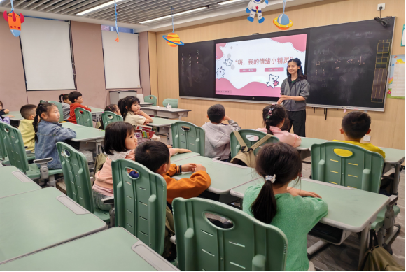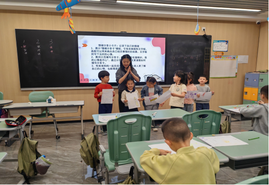 5月27日下午,由博文社区党员和发展对象代表组成的心理健康宣讲团来到新世纪语言能力培训中心,向公司的3个班级共72名儿童开展了以“hi,我的情绪小精灵”和“独一无二的我”为主题的健康宣讲。“hi,我的情绪小精灵”将不同情绪拟人化为“小精灵”,通过互动问答和游戏的方式帮助儿童识别和理解喜、怒、哀、惧等基本情绪及其表现, 引导儿童认识到所有情绪都是正常的,学习了简单的情绪接纳与调节技巧,鼓励健康表达情绪。“独一无二的我”通过自我探索活动和积极心理暗示练习,引导儿童发现自身优点、特长与价值,帮助儿童建立积极的自我认知,理解个体差异的珍贵性,培养自尊自信,学会欣赏自我与他人的独特性。宣讲团成员准备充分,讲解清晰生动,互动引导有效。活动现场气氛活跃,培训中心的员工表现出浓厚的兴趣,积极参与各项互动环节。