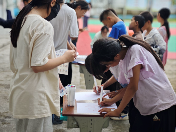 在白花村白石小学,实践队员们发挥心理专业特长,为刚刚期末考试结束的同学们策划了一场心理健康趣味活动,通过“手指印象”、“同心同行”、“情绪拼图”、“快乐投壶”等小游戏帮助同学们学会接纳情绪、释放压力,并为每位同学准备了礼物。看着孩子们从最初的羞涩拘谨到后来的积极投入、开怀大笑,实践队员们深刻感受到运用专业知识服务社会的价值感。心理健康趣味活动不仅是游戏,更是一份关注、一份理解,帮助孩子们塑造“你很棒,世界很温暖”的信念。