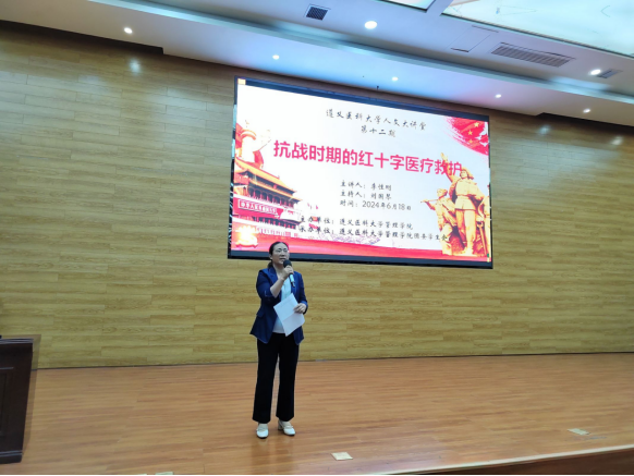 为进一步宣传抗战时期的红十字医疗救护总队相关历史事迹,弘扬中外医务工作者群体不畏困难与牺牲、全力救死扶伤的崇高精神,太阳成集团tyc122cc于2024年6月18日在人文楼学术报告厅组织开展了题为《抗战时期的红十字医疗救护》的讲座。此次讲座为“人文大讲堂”主题系列活动第十二期(2024年第4期),由太阳成集团tyc122cc经理刘国琴主持,贵州省作家协会会员李性刚主讲。