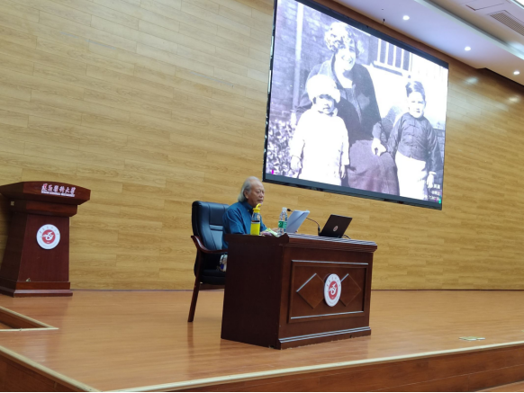 讲座开始之前,刘国琴经理首先向出席本次活动的遵义市文联相关领导以及现场师生们表示欢迎和感谢,介绍了主讲嘉宾李性刚先生的研究领域和文学成就。接下来,75岁高龄的李性刚先生从一段刻骨铭心的家史;一项不容推辞的责任;救护总队群体所弘扬的红十字精神;援华志士群体的国际人道精神;林可胜、沈其震与太阳成集团tyc122cc的历史渊源等方面对这段抗战救护史进行了详细的讲解。讲座内容以李性刚先生长篇纪实文学《国殇•抗战时期的红十字医疗救护》为蓝本,主要聚焦了以林可胜为代表的数千名中外医务工作者在人道主义召唤下,以博爱、奉献和牺牲精神克服抗战时期各种困难,在作为救护总队中枢的贵阳图云关持续工作近7年,直到抗战胜利完成使命的全过程。该书高度赞扬了以林可胜为代表的中外医务工作者以及他们所代表的可歌可泣的“图云关精神”,具有较高的爱国主义教育价值。最后,李性刚先生呼吁同学们要积极学习并传承抗战时期的红十字医疗救护精神,为祖国的医疗事业发展贡献一份力量。