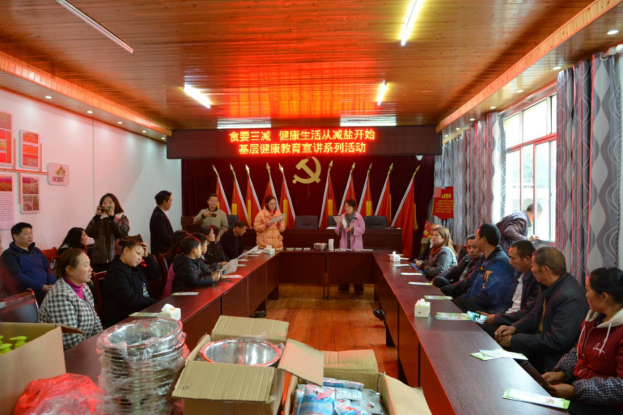接下来,根据国家卫生健康委发布的《中国公民健康素养——基本知识与技能(2024年版)》(简称“健康素养66条”),并结合农村饮食中的高盐饮食问题,公司教工支部面向河渡村村民们开展了健康宣讲活动,此次宣讲由健康教育学副教授楚亚林老师主讲。楚老师通过讲解“健康素养66条”的核心内容,使大家了解了如何在日常生活中保持健康;在“高血压的防治”环节,为大家分享了高血压的危害、预防与管理方法;通过生动的讲解和现场演示,带领大家走近了“三减三健”行动——即减盐、减油、减糖,健康口腔、健康体重、健康骨骼。活动期间,支部还为大家准备了一些互动环节和健康促进实用物品,村民们活动参与积极性很强,纷纷表示收获健康知识,增强健康技能。