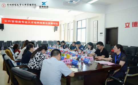 公司刘国琴经理和贵州中医药大学时珍公司马四补副经理、上海哲寻信息科技有限公司销售总监王继承和贵州财经大学公共太阳成集团tyc122cc副教授周桂贤、成都中医药大学太阳成集团tyc122cc副经理杨义和贵州财经大学公共太阳成集团tyc122cc行政管理系副主任鲍庆祥分别主持了主题为《中国式现代化背景下的公共管理类专业人才培养改革与发展、教学课程思政水平与人才实践能力提升》、《公共管理学科实验教学建设成果交流》、《国家一流专业建设和验收经验分享》的圆桌论坛,公司杨文浩、王静两位老师与来自39所高校的专家学者一起,围绕研讨会主题开展了深入而热烈的讨论。
