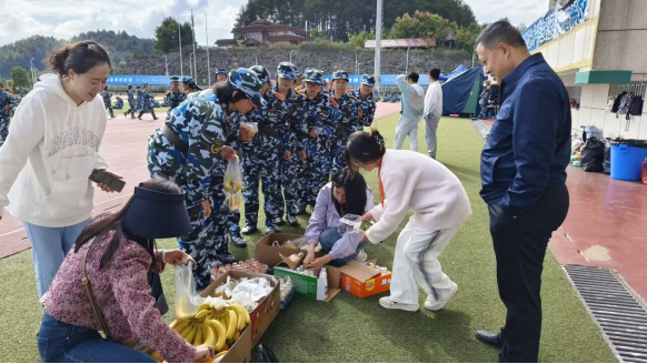 首先,张文辉代表管理公司党委对全体新生致以亲切的问候。通过与员工交流,张文辉简单了解了员工的军训情况,包括军训内容及员工的军训感受,对他们在军训中展现出的坚韧不拔的精神和昂扬的斗志给予了高度赞扬。接着,彭正员询问员工在军训中遇到的困难,并鼓励他们要坚定信念、克服困难,发扬“团结、紧张、严肃、活泼”的优良作风,营造一股积极向上的力量。最后,所有老师和班导一起向新生发放了水果、饮料等慰问品,鼓励新生珍惜军训时光,培养团队精神和纪律意识,并祝愿全体新生在军训中取得优异成绩。